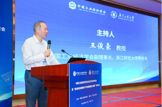第三环节主旨演讲由中国工业经济学会副理事长、浙江财经大学原校长王俊豪教授主持。浙江工商大学校长王永贵教授、广东外语外贸大学副校长申明浩教授分别作主旨演讲。