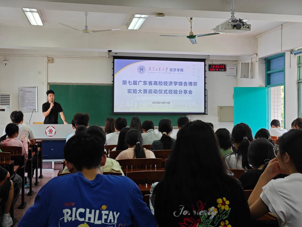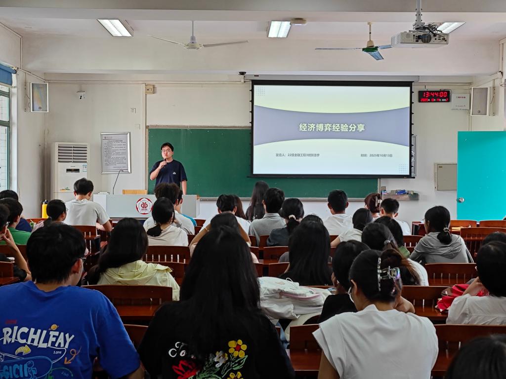 为进一步帮助同学们更好地备赛、汲取优秀参赛经验,激发科研创新热情,10月14日,学院召开“护航计划”之第七届广东省高校经济学综合博弈实验大赛动员会暨经验分享会。会议邀请往期赛事获奖者22级数字经济学专业李爱萍、22级金融工程专业张浩宇同学主讲。活动由22级本科生何兆益同学主持。