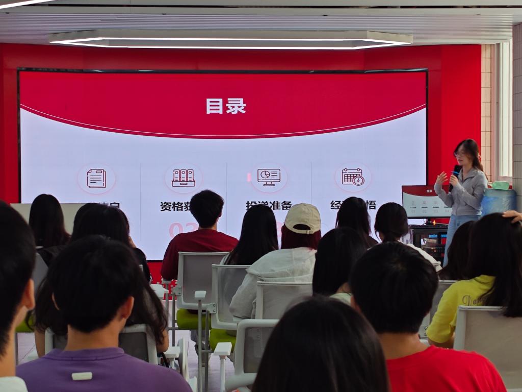 为进一步营造良好学风,充分发挥优秀学生示范引领作用,鼓励学生互学互鉴、共同成长,10月28日下午,学院举行第二期“经英领航,社启新章”——学生榜样进社区分享会(推免专场)。活动邀请2026届推免学生郑雯文、皇甫子凡、刘永淳、周可馨主讲。活动由社区育人骨干导师林锐达老师主持。