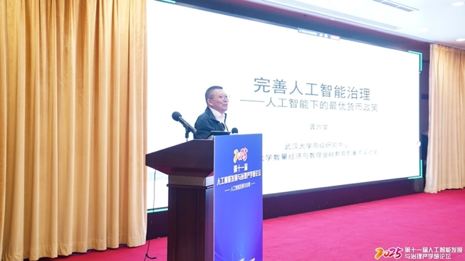 此外,武汉大学高级研究中心主任龚六堂教授,中国社会科学院财经战略研究院夏杰长研究员,暨南大学党委常委、副校长顾乃华教授,武汉大学魏立佳教授分别围绕AI治理与经济高质量增长、数智技术与服务消费扩容、产业融合以及生成式AI科研应用发表主旨报告。
