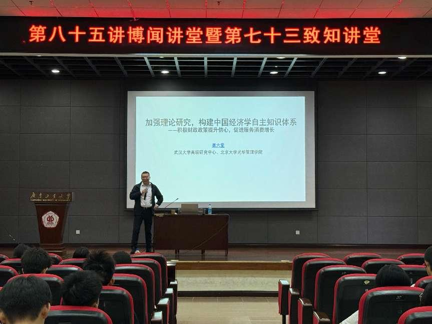 为提升我院师生对中国经济学自主知识体系的把握能力、并促进经济学领域的科研和教学工作,11月9日上午,武汉大学高级研究中心主任、北京大学数量经济与数理金融教育部重点实验室主任龚六堂教授,应邀为我院师生做了一场题为《加强理论研究,构建中国经济学自主知识体系》的学术讲座。学院师生代表共200余人参加。讲座由学院院长谢卫红教授主持。