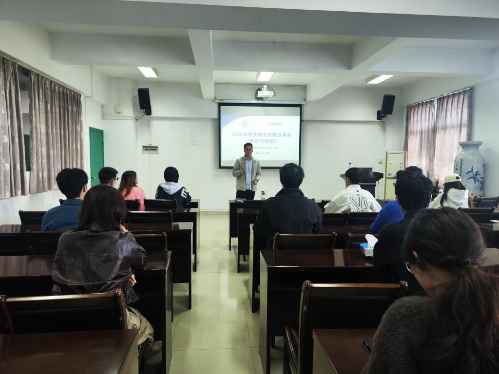为帮助同学们抓好就业机遇,明确就业定位、破解求职困局,激活朋辈群体示范带动作用,1月13日中午,学院在B北217会议室顺利召开第八期就业经验分享会(经济学专场)。本科生毕业班辅导员林韬略老师,已落实毕业去向的26届经济学专业毕业生黄焕钊、暨倩鸣、江慕婷主讲。