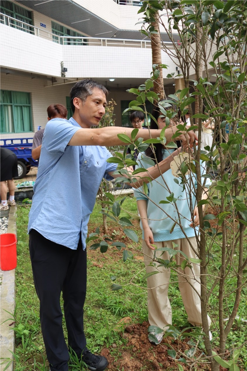 十年树木,百年树人,为进一步加强毕业生爱校教育,4月7日下午,学院开展毕业生纪念树种植活动。学院党委书记林伟英,党委副书记陈朝阳,副院长黄荣斌、孙有发、王忠,全体辅导员老师、毕业生代表共同参加。