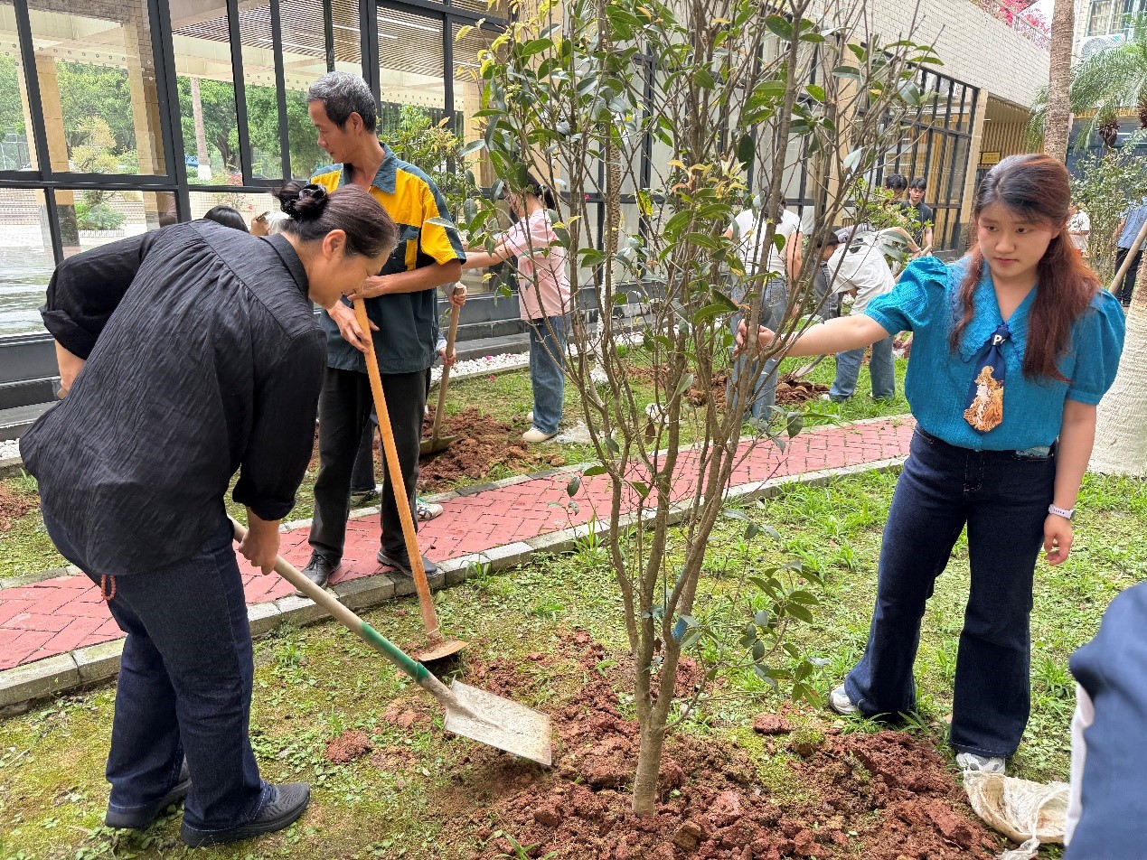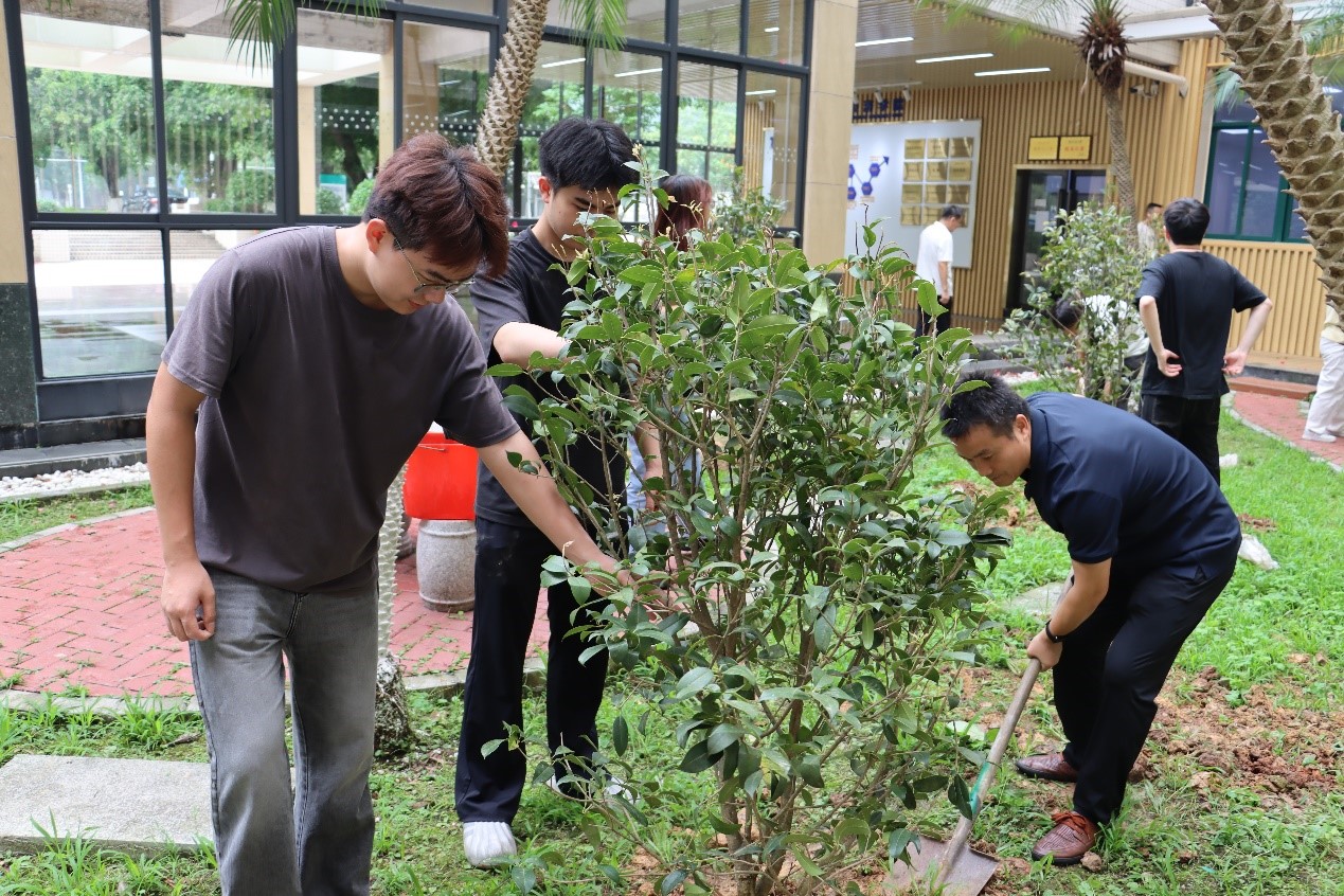 学院26届本硕毕业生以班级为单位向学院捐赠了15棵桂花树苗。在招商积余物业公司工作人员的大力支持下,领导老师们与同学们默契协作,挥锹培土、扶苗浇水,有条不紊地开展种植活动。学院师生以实际行动践行生态文明理念,弘扬劳动精神,为校园增添了一片盎然生机。