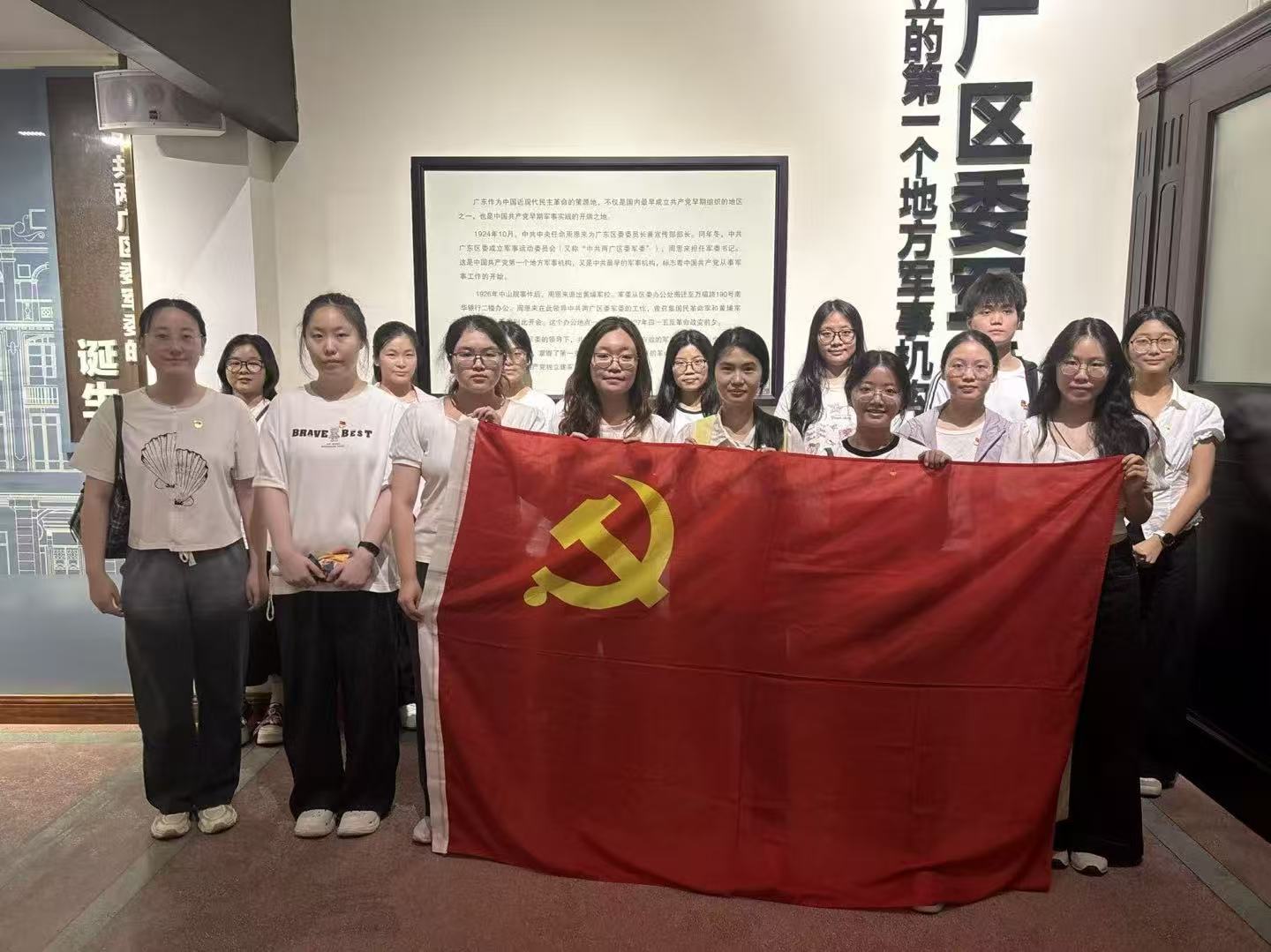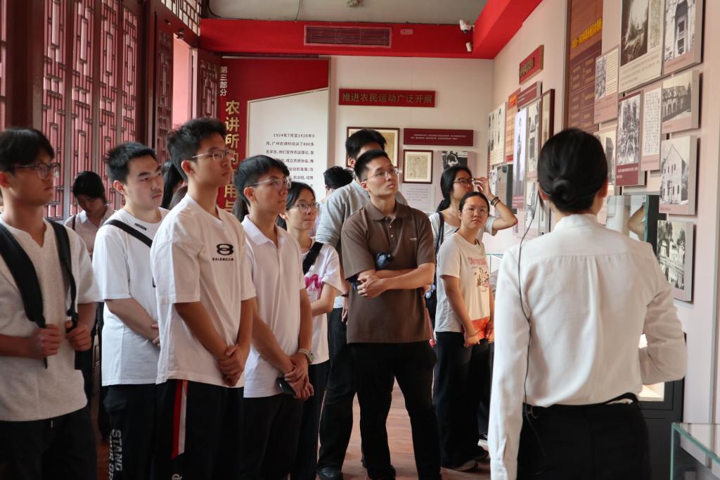 同学们首先围绕《关于加强党建带团建工作的意见》开展第一议题学习。在农讲所陈列馆内,一张张泛黄的照片、一件件承载历史的实物,将大家带回了那个风雨如晦却热血沸腾的革命年代。在中共广东区委旧址,大家回顾中国共产党成立第一个地方性军事机构的发展历史,缅怀老一辈革命家为中国共产党独立建军治军作出开拓性贡献的探索与努力。参观结束后,多名学生党员结合自身学习、学生工作和生活实际,分享了对“实干担当”“青春建功”的理解与体会。