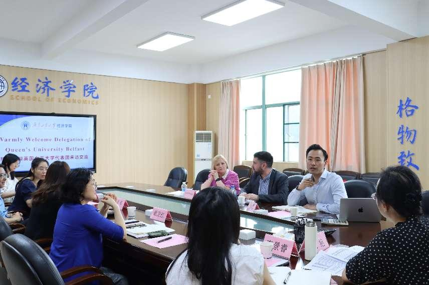 为加强国际合作与交流,促进人才培养国际化水平,4月16日,英国女王大学代表团到访我院进行交流访问。学校国际合作与交流处黄蓉处长,经济学院谢卫红院长、黄荣斌副院长及学院相关教师代表参加。
